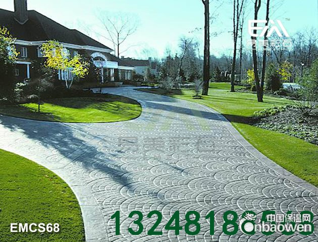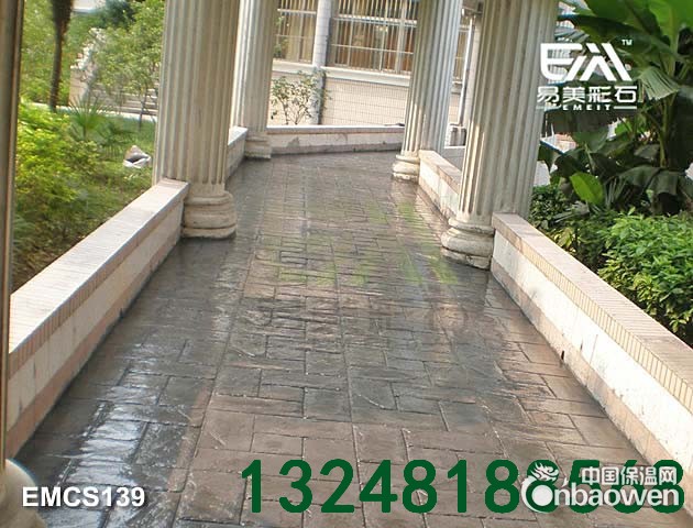 2、用易美彩石强化剂材料制作的压花地坪具有耐磨、防滑、抗冻、不易起尘、易清洁、高强度、耐冲击、且色彩和款式方面有广泛的选择性、成本低和绿色环保性等特点,是目前园林、市政、停车场、公园小道,商业和文化设施领域的理想选择。